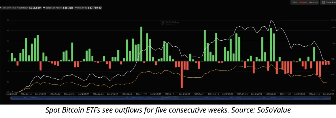 ETFs de Bitcoin à Vista Estendem Sequência de Saídas para Cinco Semanas com $3,8B de Saídas em Meio à Incerteza Macro